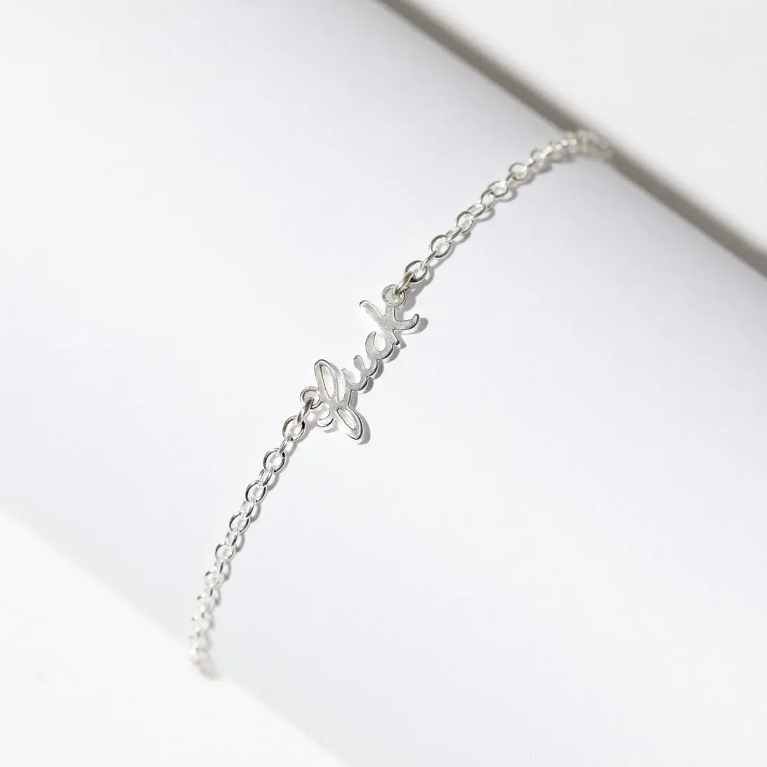 Expand your bracelet vocabulary by slipping this lil' swear into the mix.